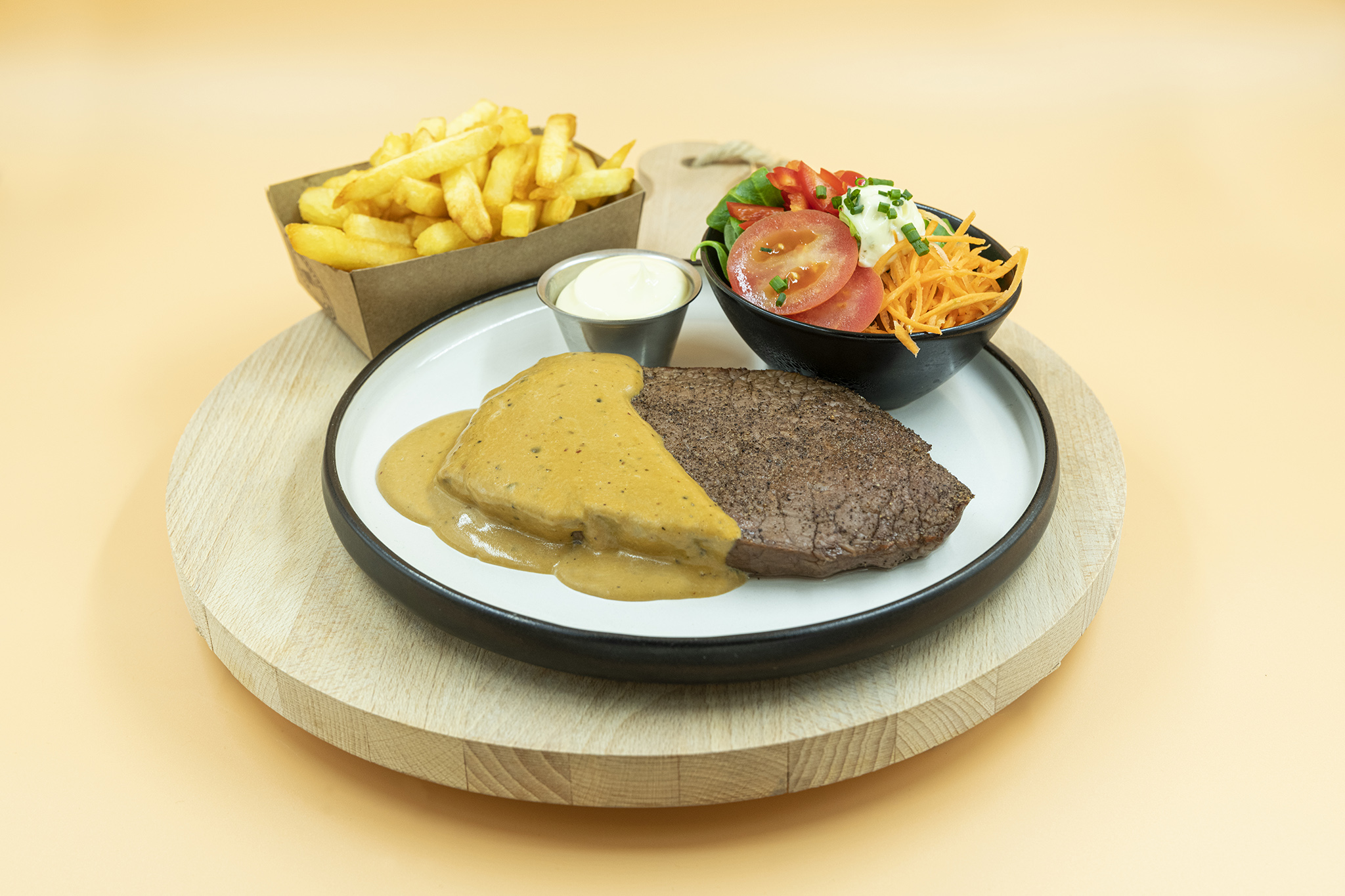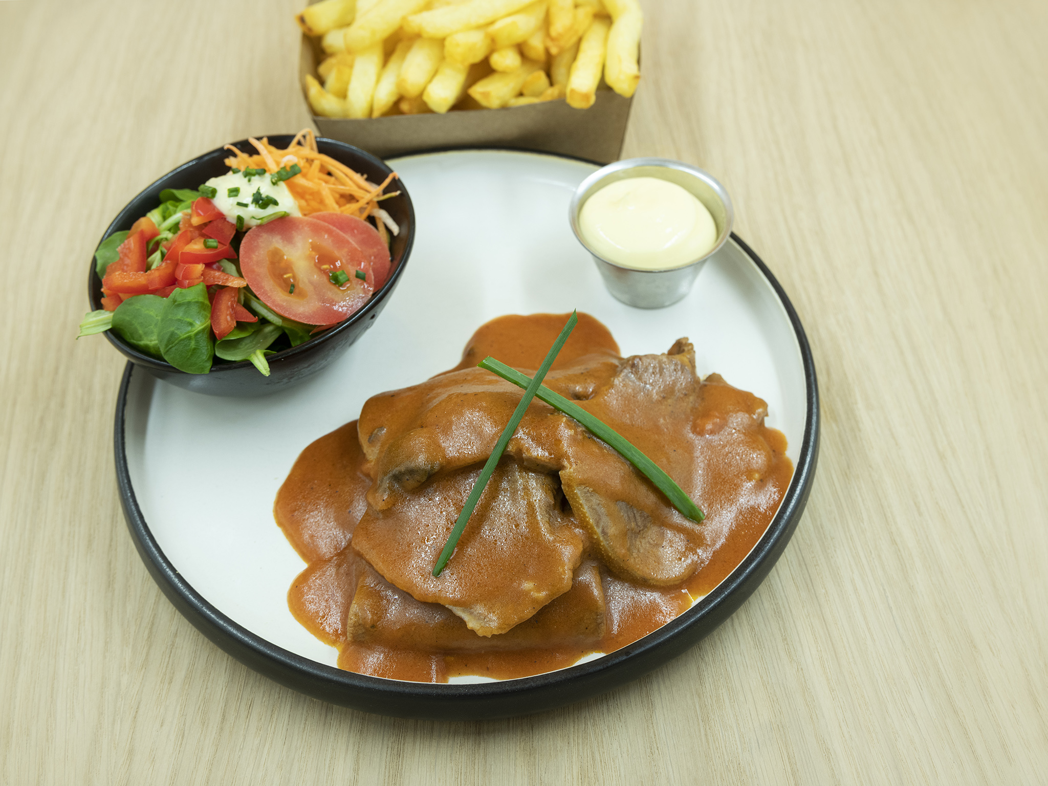 U kan bij ons nog steeds onze huisgemaakte verse bistro gerechten eten, maar tevens genieten van een vers frietje met een frituursnack of huisburger, steak, vispan enz…